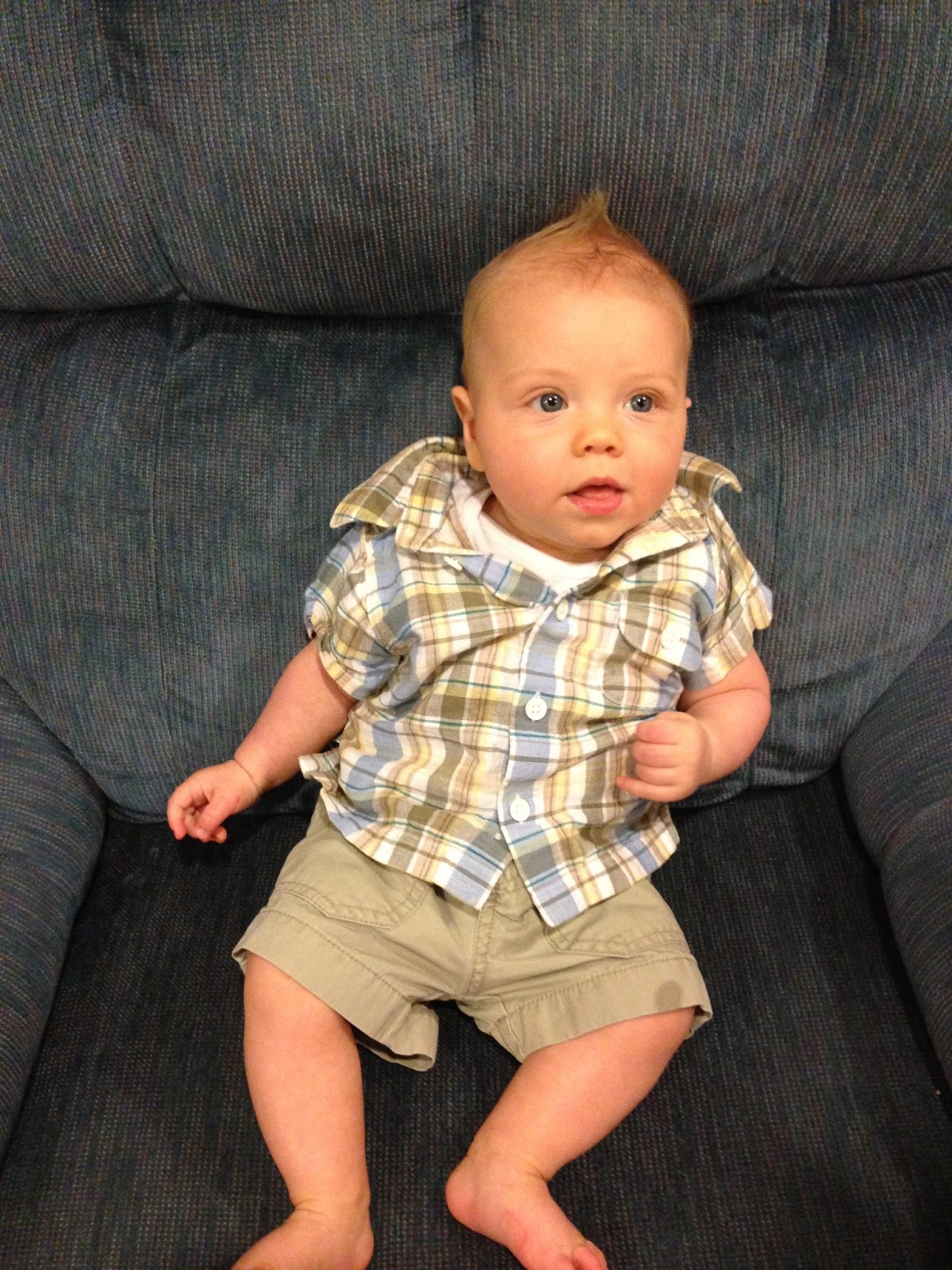 5 months is so fun. He is really starting to get into a routine. He is sleeping so much better at night too. I probably only get up once or twice..if that. He is going down better for naps also. Before I would always have to nurse him to sleep but now he can usually fall asleep on his own. We do a bath every night before bed time. I think this has helped a lot with his sleep. He doesn't take a bottle anymore..So that has been a little tricky with work but we have seemed to manage. Tom is so great and watches him every time I go to work. So grateful for a helping husband! Some new milestones...